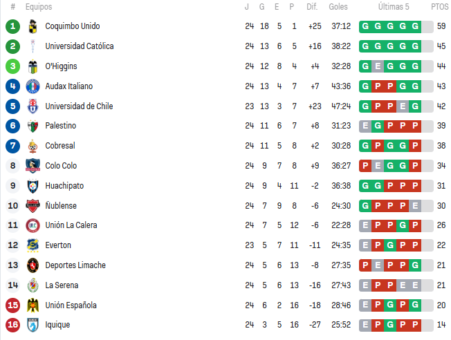 - Coquimbo 1-0 Colo Colo